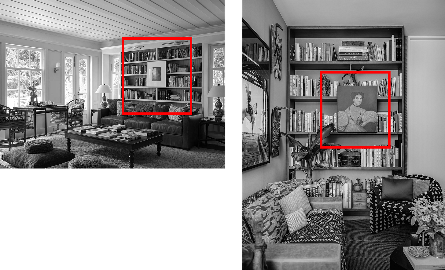 And it is VERY BAD TRANSITIONING of book into hand by way of a major “FOR SCALE” pet hate, art blocking shelves. WHY DOES THIS HAPPEN?! You f*cking bury books alive with this. Like, what poor pages are trapped behind these paintings? One must DEMOUNT this lady in oil before getting at whatever-it-is-you-have-to-remember-is-there?