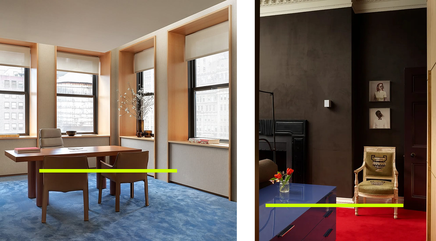 LEFT: an office by Halleroed (very good at blue; very good at like “A COLOR” that hits u). RIGHT: a “little room in London” by “FOR SCALE” super pal David NETTO.