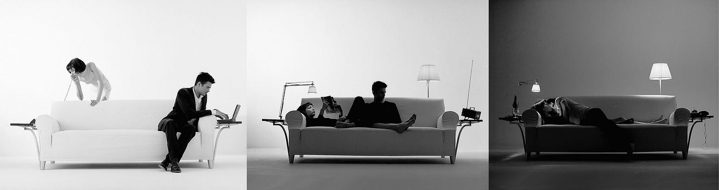 For example, unless it’s the designer, there are no bodies in chairs on KNOLL, like two on DWR, maybe three on Cassina (they need better stylists btw), a few more on B & B, um, you know – et cetera, et cetera. But exceptionally rare is this:
